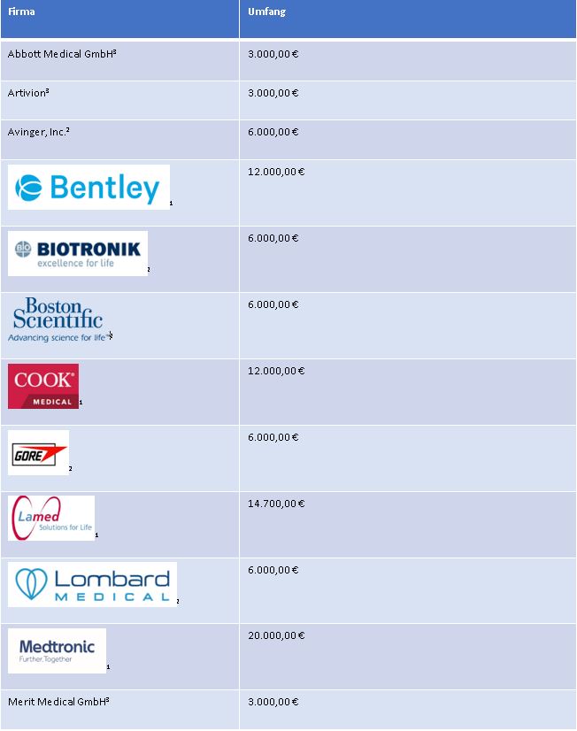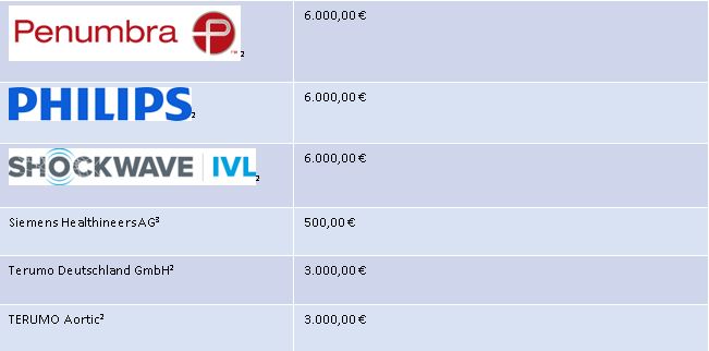 Offenlegung der Unterstützung der Masterclass 2024 gemäß erweiterter Transparenzvorgabe der FSA (Freiwilligen Selbstkontrolle für die Arzneimittelindustrie e.V.): §20 Abs. 5, der Musterberufsordnung der Ärzte: §32 (3), der Mitgliedschaft im AKG (Arzneimittel und Kooperation im Gesundheitswesen) oder mit Genehmigung zur Veröffentlichung von Unternehmen. Es sind die Unternehmen mit Umfang und Bedingungen aufgeführt. Die Liste spiegelt keine Bilanz der Durchführungs- und Organisationskosten wider, sondern die Sponsoring-Einnahmen (Gebühren für virtuelle Visitenkarten, Werbemaßnahmen usw.). Die Verantwortung für die virtuelle Industrieausstellung liegt ausschließlich bei der durchführenden Kongressorganisation KelCon GmbH. Die Fortbildungsveranstaltung ist produkt- und dienstleistungsneutral und eine Beeinflussung der wissenschaftlichen Tagungsinhalte durch die Industrie ist nicht gegeben. Etwaige Interessenkonflikte des Veranstalters, der wissenschaftlichen Leitung und der Referenten werden auf der Veranstaltung offengelegt.